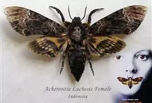 鬼脸天蛾,是鳞翅目天蛾科面形天蛾属动物。成虫翅展100~125毫米,体黑褐色;胸背有骷髅形斑纹;卵圆球形,直径约2毫米,淡黄绿色,表面光滑;老熟幼虫体长70~90毫米,蛹体长约56毫米;前翅为褐色,…全部>>
