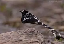 斑背燕尾是鹟科、燕尾属中型鸟类,体长24-25厘米。额至头顶前部白色,其余头、颏、喉、胸黑色,后颈有一白领,背黑色具圆形白色斑点,腰白色,两翅黑色具白色翅斑,尾呈深叉状,黑色、具白色端斑。…全部>>