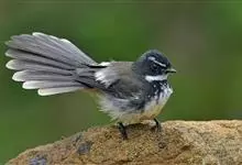 白眉扇尾鹟:体长17厘米,是一种中等体型的灰色扇尾鹟。色彩独特。宽宽的眉纹及前额白色,尾有白色宽边。髭纹白色,与黑色的脸及喉成对比;尾呈扇形,4对中央尾羽黑褐色,邻近两对具宽的白色端斑,最外侧两对白…全部>>