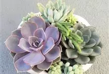 紫珍珠是景天科石莲花属的多年生肉质草本植物。植株中小型;叶片肉质,匙形,呈莲座状紧密排列;叶片粉紫色,叶缘呈粉白色,光照充足时颜色亮丽,不足时叶色会呈现深绿色或灰绿色,叶面光滑,被轻微白粉,…全部>>