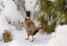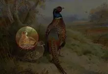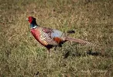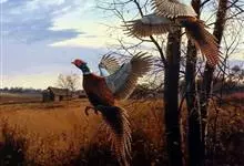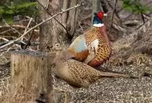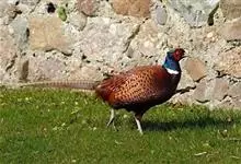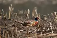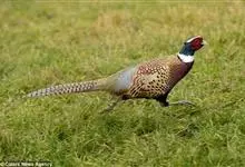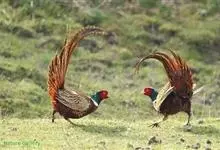 环颈雉是雉科、雉属的一种走禽,共有30个亚种。体重900-1050克,体长53-89厘米。体型较家鸡略小,但尾巴却长得多。雄鸟和雌鸟羽色不同,雄鸟羽色华丽,多具金属反光,…全部>>