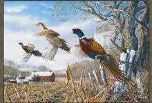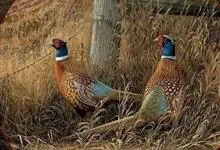 雉鸡:鸟纲、雉科、雉属的一种走禽,共有30个亚种。体形较家鸡略小,但尾巴却长得多。雄鸟和雌鸟羽色不同,雄鸟羽色华丽,多具金属反光,头顶两侧各具有一束能耸立起而羽端呈方形的耳羽簇,…全部>>