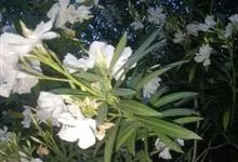 白花夹竹桃是夹竹桃科、夹竹桃属植物夹竹桃的栽培品种。常绿直立大灌木,枝条灰绿色;嫩枝条具稜,被微毛,老时毛脱落。叶3-4枚轮生,下枝为对生,叶面深绿,叶背浅绿色;侧脉纤细平行与中脉成直角;叶柄扁平,…全部>>