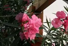 夹竹桃,又名红花夹竹桃、欧洲夹竹桃,是夹竹桃科夹竹桃属的一种常绿直立大灌木,枝条灰绿色,含水液。叶披针形,3叶轮生。聚伞花序顶生,花冠粉红至深红色,花冠漏斗状,有特殊香味。蓇葖果,圆柱形。种子长圆形,…全部>>