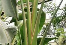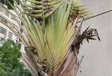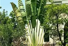 旅人蕉是鹤望兰科旅人蕉属的常绿乔木状多年生草本植物。茎似棕榈;树干直立丛生,圆柱形像棕榈,表面粗糙且干纹明显,外形像一把大折扇;叶长圆形,外形像蕉叶,叶片排列于茎顶形似大折扇;花为穗状花序腋生,…全部>>