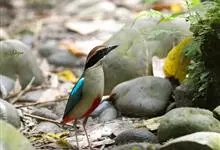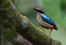 蓝翅八色鸫是雀形目八色鸫科的鸟类。体长17-20厘米,体重类约48-70克,体型圆胖,尾短,腿长,以身体具有红、绿、蓝、白、黑、黄、褐、栗等鲜艳夺目,丰富艳丽的色彩而得名,是很有观赏价值的鸟类。主要…全部>>