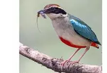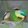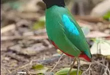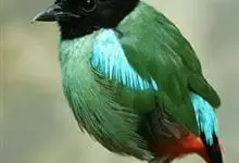 绿胸八色鸫:是雀形目八色鸫科的鸟类,共有12个亚种。体长为16-18厘米,体重65-69克。体型圆胖,尾短,腿长。头黑,上体绿色,两翼深色而具白色斑纹,头顶至后枕深褐,胸及腹部苹果绿,臀亮红。…全部>>