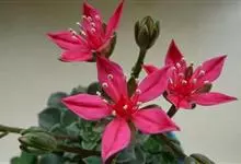 青星美人是景天科厚叶草属的多肉植物。开花时抽生出长长的花梗,簇状花序,红色花朵依次开放,呈倒钟形,串状排列;有短茎,排列为近莲座状;叶片肥厚,呈匙型且较细长,叶缘圆弧状,叶片光滑、有微量白粉,叶色翠绿,…全部>>