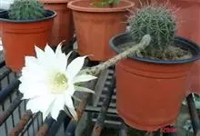 仙人球花 仙人掌科,仙人球属。植株单生或成丛。幼株球形,老株长成圆筒状,高可达75厘米,直径12-15厘米。球体暗绿色,具棱11-12。刺锥状,黑色,长1-1.5厘米。花着生于球体侧方,大型嗽喇叭状…全部>>