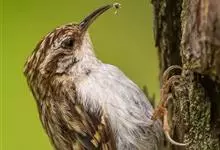 旋木雀是旋木雀科旋木雀属的一种动物。小型鸟类,体长12~15厘米,平均重10克。嘴长而下曲,上体棕褐色具白色纵纹,腰和尾上覆羽红棕色,尾黑褐色,外翈羽缘淡棕色,翅黑褐色,翅上覆羽羽端棕白色,…全部>>