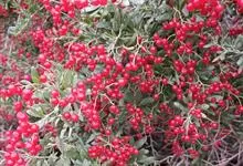 火棘 H. L. Li)是蔷薇科火棘属常绿灌木,老枝呈暗褐色;叶片呈倒卵形,边缘有钝锯齿,齿尖向内弯,两面皆无毛;叶柄短,无毛或嫩时有柔毛;花序是复伞房状,花瓣呈白色近圆形;果球近圆形,…全部>>