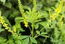 草木樨 Pall.)是豆科草木樨属的二年生草本植物。茎直立粗壮,多分枝,具纵棱,微被柔毛;羽状三出复叶,全缘或基部有1尖齿,小叶倒卵形、阔卵形、倒披针形至线形,边缘具不整齐疏浅齿;总状花序腋生,…全部>>
