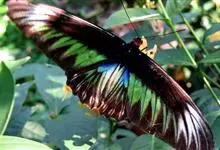 荧光裳凤蝶是凤蝶科裳凤蝶属的一种大型蝴蝶,该物种共有3个亚种。该蝶飞翔的时候姿态优美,前翅黑色,后翅金黄色和黑色交融的斑纹在阳光照射下金光灿灿,显得华贵美丽。幼虫寄主为多种马兜铃属的植物,取食马兜铃…全部>>