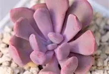 紫珍珠是景天科石莲花属的多年生肉质草本植物。植株中小型;叶片肉质,匙形,呈莲座状紧密排列;叶片粉紫色,叶缘呈粉白色,光照充足时颜色亮丽,不足时叶色会呈现深绿色或灰绿色,叶面光滑,被轻微白粉,…全部>>