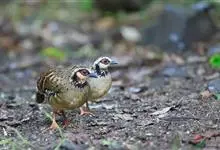 褐胸山鹧鸪:雄鸟体长22厘米,体重310克;雌鸟体长23厘米,体重220-275克。前额皮黄白色,头顶橄榄褐色。眼部的裸皮鲜红色,有一条宽阔的皮黄白色眉纹一直延伸到颈的侧部。上体亮橄榄褐色,具黑色横斑。…全部>>