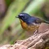 棕胸蓝姬鹟:属小型鸣禽,体长10-13厘米,体重6-10克,是一种体型很小的灰蓝及棕色鹟,雌雄羽色不同,雄鸟羽色艳丽,雌鸟羽色暗淡。雄鸟上体深蓝色,胸橙黄色,下腹灰白色。亚成鸟具褐色斑驳。…全部>>