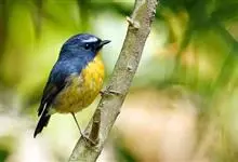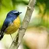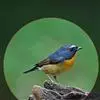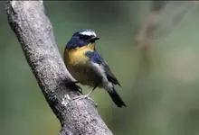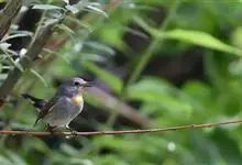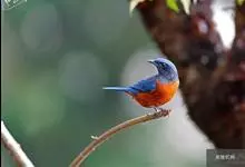 棕胸蓝姬鹟:属小型鸣禽,体长10-13厘米,体重6-10克,是一种体型很小的灰蓝及棕色鹟,雌雄羽色不同,雄鸟羽色艳丽,雌鸟羽色暗淡。雄鸟上体深蓝色,胸橙黄色,下腹灰白色。亚成鸟具褐色斑驳。…全部>>