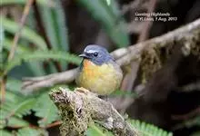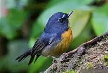 棕胸蓝姬鹟:属小型鸣禽,体长10-13厘米,体重6-10克,是一种体型很小的灰蓝及棕色鹟,雌雄羽色不同,雄鸟羽色艳丽,雌鸟羽色暗淡。雄鸟上体深蓝色,胸橙黄色,下腹灰白色。亚成鸟具褐色斑驳。…全部>>