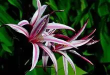 红花文殊兰又名西南文殊兰,拉丁文名Crinum latifolium L.多年生粗壮草本。分布于广西、贵州、云南。常生于河床、沙地。越南至印度及马来西亚也有分布。全部>>