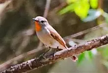 橙胸姬鹟:体长12-16厘米,是一种体型略小的林栖型鹟。尾黑而基部白,上体橄榄褐色,额具一白色横带,两端向上延伸至眼上形成眉斑。翼橄榄色,下体灰。成年雄鸟额上有狭窄白色并具小的深红色项纹,常不明显。…全部>>