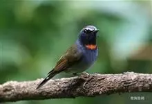 棕胸蓝姬鹟:属小型鸣禽,体长10-13厘米,体重6-10克,是一种体型很小的灰蓝及棕色鹟,雌雄羽色不同,雄鸟羽色艳丽,雌鸟羽色暗淡。雄鸟上体深蓝色,胸橙黄色,下腹灰白色。亚成鸟具褐色斑驳。…全部>>