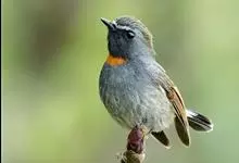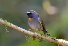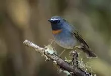 棕胸蓝姬鹟:属小型鸣禽,体长10-13厘米,体重6-10克,是一种体型很小的灰蓝及棕色鹟,雌雄羽色不同,雄鸟羽色艳丽,雌鸟羽色暗淡。雄鸟上体深蓝色,胸橙黄色,下腹灰白色。亚成鸟具褐色斑驳。…全部>>