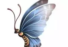 天堂凤蝶翅展可达105mm。前、后翅自基角至后缘约1/2~2/3端为纯净的宝蓝色,后角至后缘1/3~1/2端为黑色,后翅有黑色的尾突。翅背面为棕褐色。全部>>