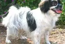 日本狆是极小型犬;被毛长而丰厚,不弯曲;毛色为白色底,带黑色或栗色斑块,斑块颜色越艳越好;斑块以在耳、身、面、尾根左右对称者为佳;头较大而圆,头骨平坦;吻短,鼻尖缩至两眼之间,几乎与眼同齐;眼大而凸出,…全部>>