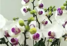 蝴蝶兰又名蝶兰,素有“兰花皇后”的美称。兰科蝴蝶兰属多年生草本植物,茎很短,常被叶鞘所包;叶片稍肉质,上面是绿色,而背面是紫色,呈椭圆形或长圆形,且先端锐尖或钝,具有短而宽的鞘;花色为白色,…全部>>