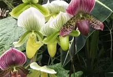 兜兰是兰科兜兰属的多年生草本植物。根茎粗状,直径3~4毫米,有很多须根;叶基生,叶片肉质增厚,排成紧密2列,叶片呈长圆形,表面有极短柔毛;总状花序,粉白色,花葶直立或倾斜,深绿色或褐色,花瓣大,呈唇形,…全部>>