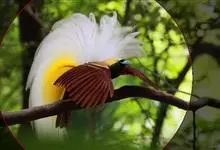 大极乐鸟是极乐鸟属中最大的鸟种。成年雄鸟体长可达到43厘米,雌性可达35厘米。雄鸟的额、颊、喉等墨绿色;头、颈黄色;上体暗赤栗色;腹部葡萄红色,胁部有长饰羽,其基部橙黄,中部黄色,…全部>>
