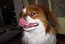 日本狆是极小型犬;被毛长而丰厚,不弯曲;毛色为白色底,带黑色或栗色斑块,斑块颜色越艳越好;斑块以在耳、身、面、尾根左右对称者为佳;头较大而圆,头骨平坦;吻短,鼻尖缩至两眼之间,几乎与眼同齐;眼大而凸出,…全部>>