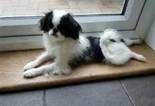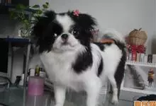 日本狆是极小型犬;被毛长而丰厚,不弯曲;毛色为白色底,带黑色或栗色斑块,斑块颜色越艳越好;斑块以在耳、身、面、尾根左右对称者为佳;头较大而圆,头骨平坦;吻短,鼻尖缩至两眼之间,几乎与眼同齐;眼大而凸出,…全部>>