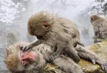 日本猕猴:是一种中型矮壮的猴子,共有两个亚种。体长47-60厘米;尾长7-12厘米;重量8千克-11千克。尾巴相对短,不到头体长的四分之一。颜面瘦削,头顶没有向四周辐射的漩毛,呈棕色,额略突,眉骨高…全部>>