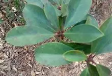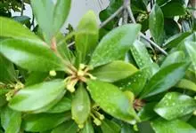 厚皮香 Bedd.)是五列木科、厚皮香属常绿灌木或小乔木,高可达15米,胸径达40厘米,树皮平滑灰褐色,小枝灰褐色。叶革质或薄革质,假轮生状,齿尖具黑色小点,上面深绿色或绿色,下面浅绿色,花两性或单性,…全部>>