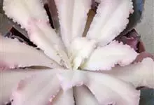 女王花笠,又名扇贝石莲花、女王花舞笠,是景天科拟石莲花属的多肉植物。由美国加利福尼亚州的育种师Dick Wright于1964年培育。特征是呈大波浪状褶皱的红色叶缘和气质高贵的粉紫色调。…全部>>