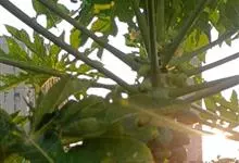 番木瓜,番木瓜科番木瓜属的常绿软木质小乔木,高达10米,具有乳汁;茎不分枝或有时于损伤处分枝;叶大且聚生于茎顶,近似盾形,叶柄中空;花单性或两性,有些品种雄株偶尔生两性花或雌花,…全部>>