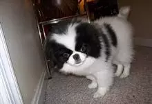 日本狆是极小型犬;被毛长而丰厚,不弯曲;毛色为白色底,带黑色或栗色斑块,斑块颜色越艳越好;斑块以在耳、身、面、尾根左右对称者为佳;头较大而圆,头骨平坦;吻短,鼻尖缩至两眼之间,几乎与眼同齐;眼大而凸出,…全部>>