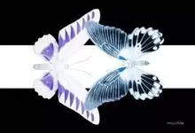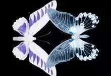 天堂凤蝶翅展可达105mm。前、后翅自基角至后缘约1/2~2/3端为纯净的宝蓝色,后角至后缘1/3~1/2端为黑色,后翅有黑色的尾突。翅背面为棕褐色。全部>>
