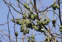 辽东桤木是桦木科桤木属植物,高可达20米;树皮光滑灰褐色,枝条具棱暗灰色,小枝褐色,芽具柄,叶片近圆形,很少近卵形,顶端圆,上面暗褐色,下面淡绿色或粉绿色,果序近球形或矩圆形,序梗极短,果苞木质,…全部>>