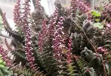 茜之塔 Toelken)是景天科青锁龙属多年生肉质草本植物。茜之塔叶交互对生,紧密排列,三角形,绿色,冬季叶转变呈红色;花小,白色;花期秋季。茜之塔因其整齐层叠的紫红色叶片让人想到红色佛塔,故名。…全部>>
