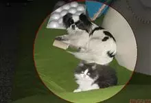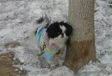 日本狆是极小型犬;被毛长而丰厚,不弯曲;毛色为白色底,带黑色或栗色斑块,斑块颜色越艳越好;斑块以在耳、身、面、尾根左右对称者为佳;头较大而圆,头骨平坦;吻短,鼻尖缩至两眼之间,几乎与眼同齐;眼大而凸出,…全部>>