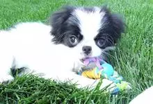 日本狆是极小型犬;被毛长而丰厚,不弯曲;毛色为白色底,带黑色或栗色斑块,斑块颜色越艳越好;斑块以在耳、身、面、尾根左右对称者为佳;头较大而圆,头骨平坦;吻短,鼻尖缩至两眼之间,几乎与眼同齐;眼大而凸出,…全部>>