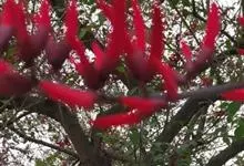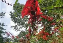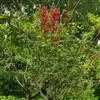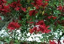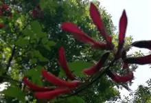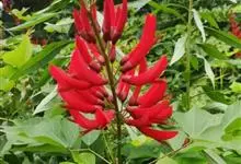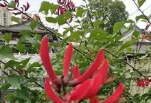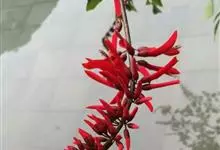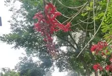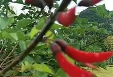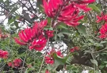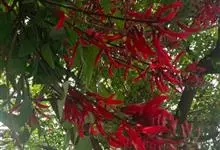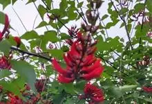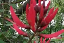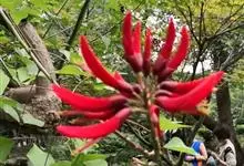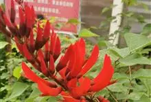 龙牙花是豆科刺桐属小乔木或灌木植物。株高可达3-5米;树干和分枝有散生皮刺;羽状复叶具3小叶,叶柄无毛,有时有下弯的刺,小叶菱状卵形,先端渐尖而钝或长渐尖,基部宽楔形,两面无毛,…全部>>