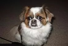 日本狆是极小型犬;被毛长而丰厚,不弯曲;毛色为白色底,带黑色或栗色斑块,斑块颜色越艳越好;斑块以在耳、身、面、尾根左右对称者为佳;头较大而圆,头骨平坦;吻短,鼻尖缩至两眼之间,几乎与眼同齐;眼大而凸出,…全部>>