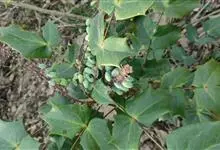 阔叶十大功劳 Carr. )是小檗科,十大功劳属常绿灌木或小乔木,高可达2米。叶长圆形,上面深绿色,叶脉显著,背面淡黄绿色,网脉隆起,小叶无柄,基部一对小叶倒卵状长圆形,总状花序簇生,…全部>>