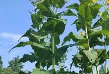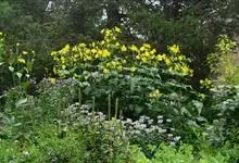 串叶松香草是菊科松香草属植物。多年生草本,根系发达粗壮,支根多,一般株高2-3米,最高的可达3.5米,茎实心,嫩时质脆含汁。叶色深绿,叶片宽大,一般长约60厘米左右,宽30厘米左右,最长叶可达97厘米。…全部>>