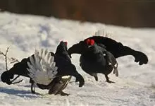 松鸡是鸡形目雉科松鸡属鸟类。钝圆的尾能如火鸡般竖起成扇形。上体辉紫,胸部辉绿,红色肉瘤成眉块。雄鸡蹄叫时尾及喉部羽毛竖起。褐色,重杂黑色、灰色及白色。虹膜为深褐,嘴为黑色,脚着灰色羽。在外形上,…全部>>