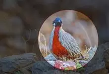 血雉雉科血雉属鸟类,别名血鸡、松花鸡,血雉的雄鸟大覆羽、尾下覆羽、尾上覆羽、脚、头侧、腊膜为红色,故称血雉。其别名甚多,各地皆异。在甘肃,因其胸侧和翅上覆羽沾绿,被称为“绿鸡”;因其羽毛形似柳叶,…全部>>