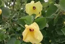 海滨木槿是锦葵科木槿属植物,落叶小乔木,株高3-5米,胸径20厘米,扁球形树冠,枝叶繁盛。厚纸质单叶互生,扁圆形、倒卵形或宽倒卵形,先端钝近平,具短突尖,基部圆形或浅心形,叶缘中上部具细圆齿,…全部>>
